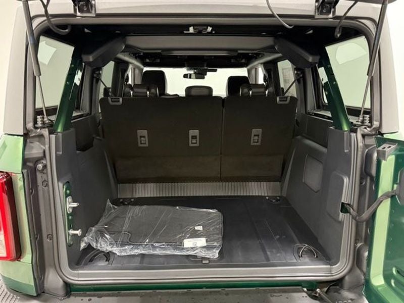 Equipment Group 222A Mid Package: 17" Carbonized Gray-Painted Aluminum Wheel; Rear Parking Sensors; Power Outlet - Back Side of Center Floor Console; Dual Smart Charging USB Ports; 2.3L EcoBoost I-4 Engine; Front Row Heated Seats; Driver and Front Passenger Illuminated Sliding Visor Vanity Mirrors; AM/FM Stereo; Dual-Zone Electronic Automatic Temperature Control; Connected Navigation; P255/75R17 A/T Tires; Ambient Footwell Lighting; Remote Start System; 2-Door Intelligent Access with Lock/unlock. Ford Co-Pilot360: Auto High-Beam Headlamps; Rear View Camera; Pre-Collision Assist with Automatic Emergency Braking; Blind Spot Information System (BLIS); Lane-Keeping System. Black Diamond Package: Rock Rails; Washout Capable Rubberized Flooring; Powder Coated Steel Front and Rear Bumpers; Full Vehicle Steel Bash Plates; Auxiliary Switches; LED Fog Lamps. Carbonized Gray Molded-In-color Hard Top. Marine Grade Vinyl Bucket Seats. Hard Top Sound Deadening Headliner. Eruption Green Metallic. On-Road Assistance Kit. First Aid Kit. **Equipment listed is based on original vehicle build and subject to change. Please confirm the accuracy of the included equipment by calling the dealer prior to purchase.**