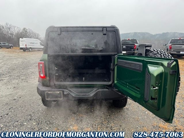 Eruption Green Metallic 2025 Ford Bronco Outer Banks NAVIGATION SYSTEM, LEATHER SEATS, BLIND SPOT DETECTION, ACTIVE PARK ASSIST, TOW PACKAGE, POLISHED WHEELS, SIRIUS/XM RADIO, FORD SYNC, HEATED SEATS, BACKUP SENSORS, BACKUP CAMERA, PUSH BUTTON START/STOP, 4X4/ALL WHEEL DRIVE/4WD, FACTORY WARRANTY, APPLE CARPLAY, Bluetooth®, 3.73 Axle Ratio, 360-Degree Camera, Adaptive Cruise Control, Alloy wheels, Auto High-beam Headlights, Automatic temperature control, Black Appearance Package, Black Molded-In-Color Door Handles, Black Molded-In-Color Fender Flares, Black Molded-In-Color Sideview Mirror Caps, Black-Painted Molded-In-Color Grille, Delay-off headlights, Electronic Stability Control, Equipment Group 314A Lux Package, Evasive Steering Assist, Exterior Parking Camera Rear, Front dual zone A/C, Front Parking Sensors, Fully automatic headlights, Hard Top Sound Deadening Headliner, Heated Leather-Trimmed/Vinyl Bucket Seats, Heated steering wheel, Information on Demand Panel, Navigation system: Connected Navigation, Radio: B&O Sound System by Bang & Olufsen, Security system, Sideview Mirrors, SiriusXM w/360L, SYNC 4, Universal Garage Door Opener, Variably intermittent wipers. 4WD 10-Speed Automatic 2.7L EcoBoost V6