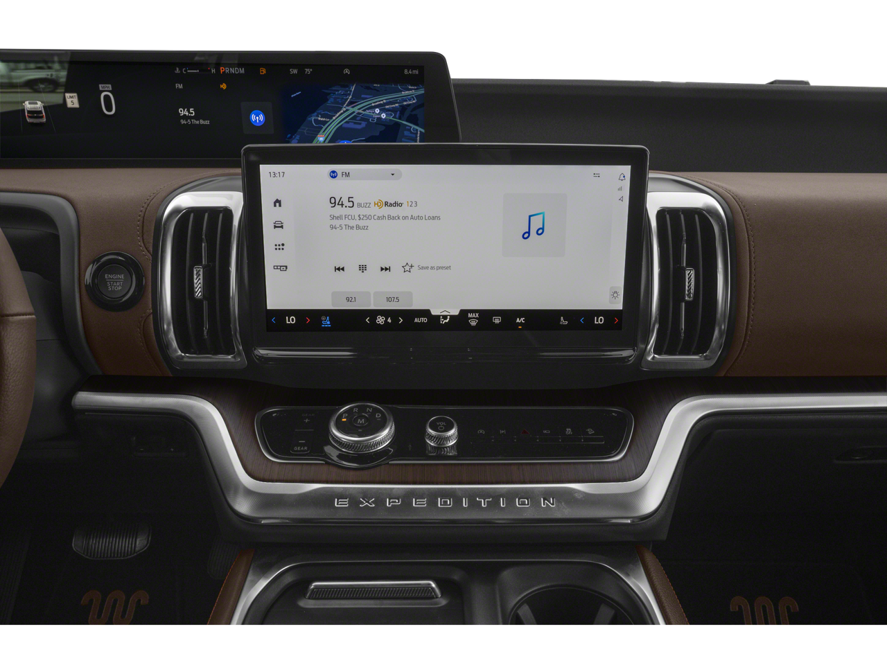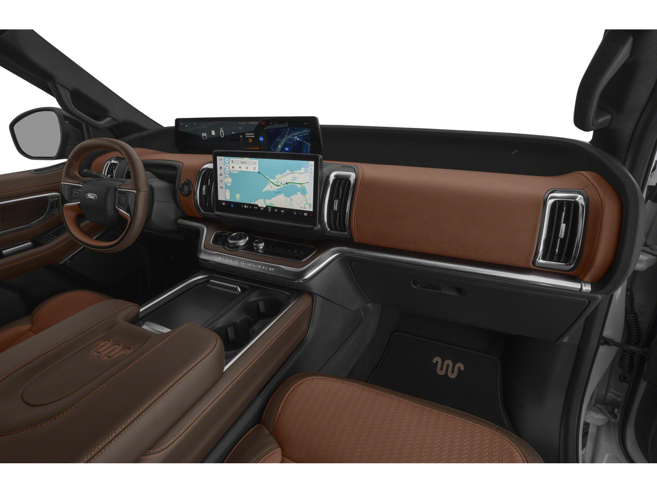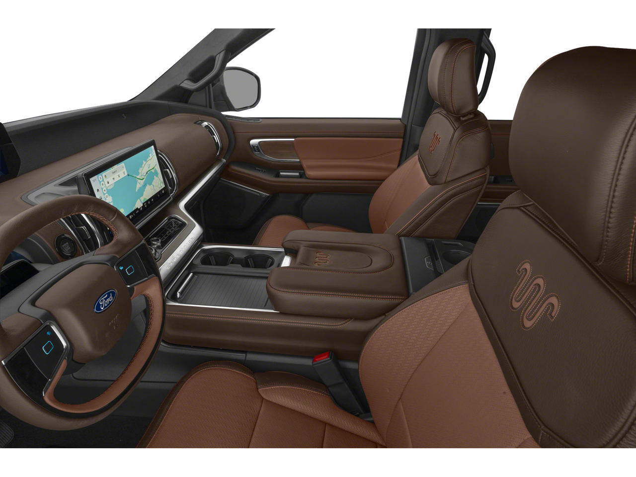 Equipment Group 400A (3.73 Axle Ratio, Digital Device Holder, Heated/Ventilated Premium Del Rio Leather Front Captain's Chairs, and Wheels: 22 x 9.0 Diamond Cut Machined Face Aluminum), Ford Connectivity Package (1-Year Included), 22 Speakers, 3rd row seats: split-bench, 4-Wheel Disc Brakes, ABS brakes, Adaptive suspension, Adjustable pedals, Air Conditioning, Alloy wheels, AM/FM radio: SiriusXM with 360L, Apple CarPlay/Android Auto, Auto High-beam Headlights, Auto-dimming door mirrors, Auto-dimming Rear-View mirror, Automatic temperature control, Brake assist, Bumpers: body-color, Compass, Delay-off headlights, Driver door bin, Driver vanity mirror, Dual front impact airbags, Dual front side impact airbags, Electronic Stability Control, Emergency communication system: 911 Assist, Exterior Parking Camera Rear, Ford Digital Experience, Four wheel independent suspension, Front anti-roll bar, Front Bucket Seats, Front Center Armrest, Front dual zone A/C, Front License Plate Bracket, Front reading lights, Fully automatic headlights, Garage door transmitter, Genuine wood dashboard insert, Genuine wood door panel insert, Heated door mirrors, Heated front seats, Heated rear seats, Heated steering wheel, Illuminated entry, Leather steering wheel, Low tire pressure warning, Memory seat, Navigation System, Occupant sensing airbag, Outside temperature display, Overhead airbag, Overhead console, Panic alarm, Passenger door bin, Passenger vanity mirror, Pedal memory, Power door mirrors, Power driver seat, Power moonroof: Vista Roof, Power passenger seat, Power steering, Power windows, Radio data system, Radio: B&O Unleashed Sound System by Bang & Olufsen, Rain sensing wipers, Rear air conditioning, Rear anti-roll bar, Rear reading lights, Rear window defroster, Rear window wiper, Reclining 3rd row seat, Remote keyless entry, Security system, SiriusXM with 360L, Speed control, Speed-sensing steering, Speed-Sensitive Wipers, Split folding rear seat, Spoiler, Steering wheel memory, Steering wheel mounted audio controls, Tachometer, Telescoping steering wheel, Tilt steering wheel, Traction control, Trip computer, Turn signal indicator mirrors, Variably intermittent wipers, Ventilated front seats, and Voltmeter.