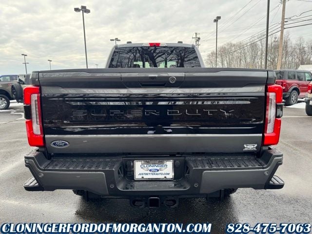 Ford Connectivity Package (1-Year Included), GVWR: F-250 >10K Package, High Capacity 11.6 Axle Upgrade Package, Internet access capable: 5G Modem - Ford Connectivity Package, Order Code 703A (3.73 Axle Ratio, Flow-Through Console, Radio: B&O Unleashed Sound System by Bang & Olufsen, SiriusXM with 360L, SYNC 4 with Enhanced Voice Recognition, Unique Platinum Leather 40/Console/40 Seats, and Wheels: 20 Bright Machined and Painted Aluminum), 4WD, ABS brakes, Alloy wheels, Brake assist, Electronic Stability Control, Front fog lights, Fully automatic headlights, Heated door mirrors, Heated front seats, Heated rear seats, Heated steering wheel, Leather steering wheel, Navigation system: Connected Navigation, Power driver seat, Rain sensing wipers, Rear step bumper, SecuriCode Keyless Entry Keypad (driver's Side), Steering wheel mounted A/C controls, Steering wheel mounted audio controls, Ventilated front seats, 14 Speakers, 4-Wheel Disc Brakes, 410 Amp Dual Alternators, Adjustable pedals, Air Conditioning, AM/FM radio: SiriusXM with 360L, Auto High-beam Headlights, Auto tilt-away steering wheel, Auto-dimming Rear-View mirror, Automatic temperature control, Bumpers: body-color, Compass, Delay-off headlights, Driver door bin, Driver vanity mirror, Dual front impact airbags, Dual front side impact airbags, Emergency communication system: SYNC 4 911 Assist, Engine Block Heater, Front anti-roll bar, Front Bucket Seats, Front Center Armrest, Front dual zone A/C, Front License Plate Bracket, Front reading lights, Garage door transmitter, Heads-Up Display, Illuminated entry, Low tire pressure warning, Memory seat, Outside temperature display, Overhead airbag, Overhead console, Panic alarm, Passenger door bin, Passenger vanity mirror, Pedal memory, Power door mirrors, Power passenger seat, Power steering, Power windows, Pro Power Onboard - 2kW, Rear reading lights, Rear seat center armrest, Rear window defroster, Remote keyless entry, Security system, Speed control, Split folding rear seat, Steering wheel memory, Tachometer, Telescoping steering wheel, Tilt steering wheel, Traction control, Trip computer, Turn signal indicator mirrors, Twin Panel Power Moonroof, Upfitter Switches (6), and Variably intermittent wipers.