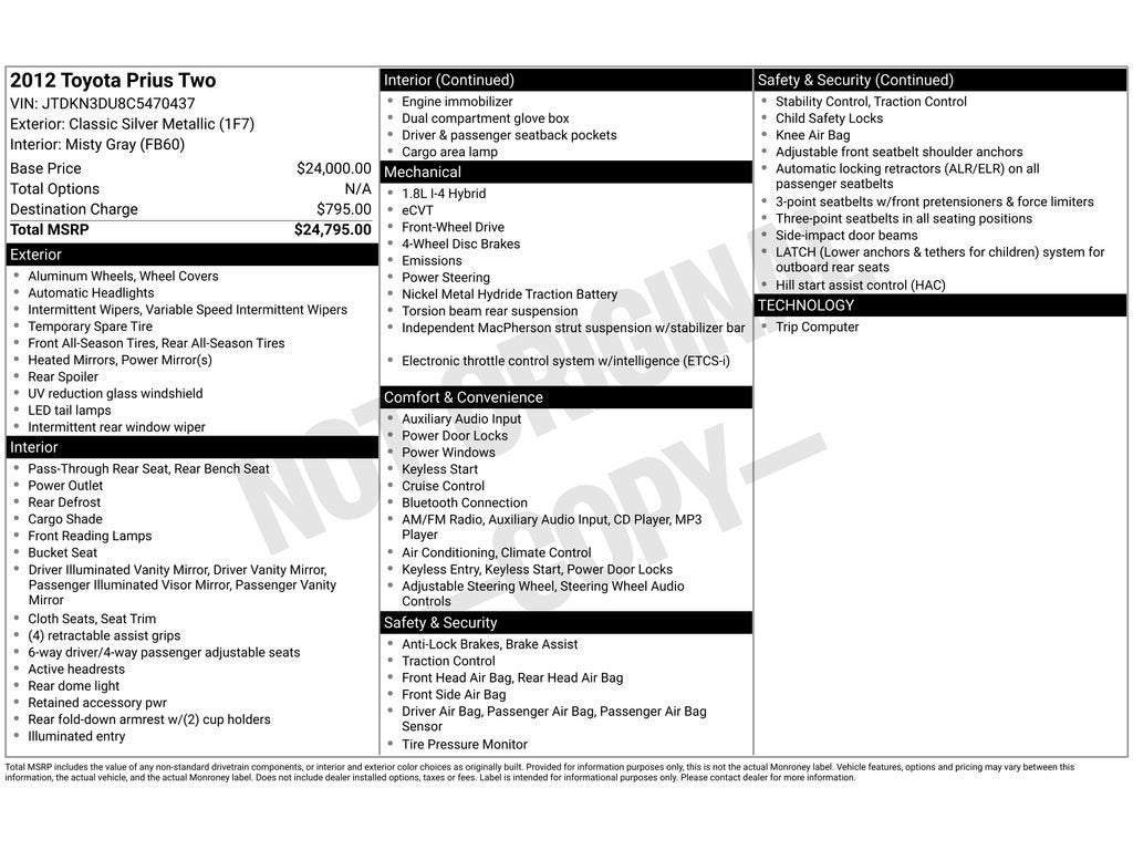 2012 Toyota Prius Two