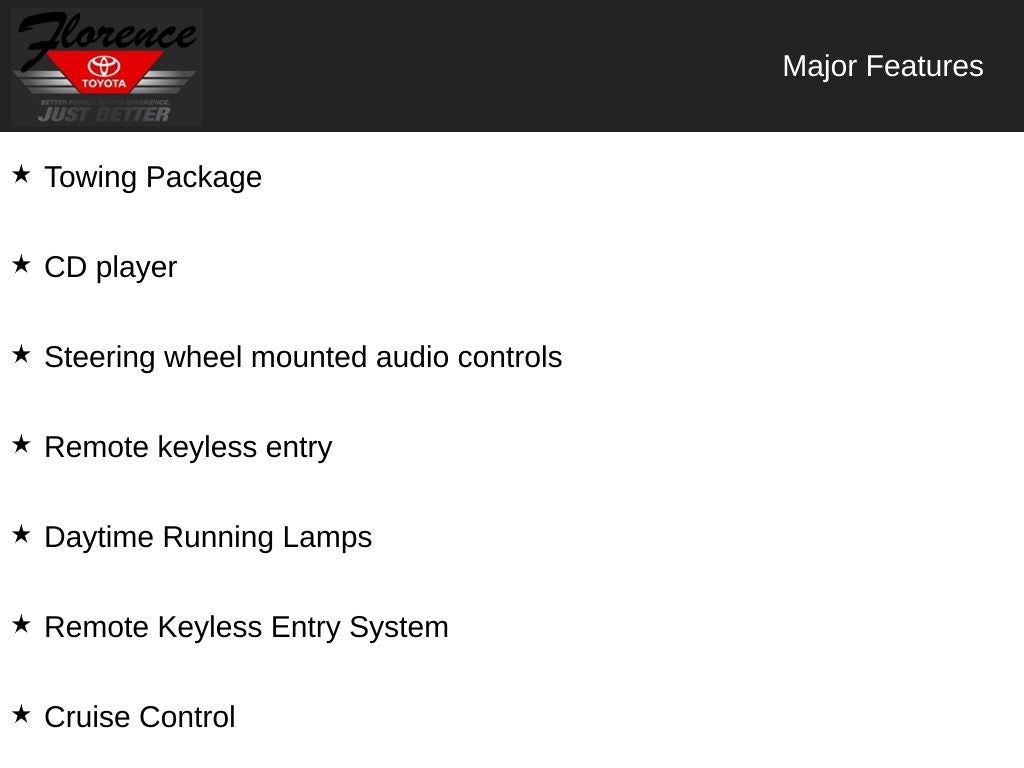 At Florence Toyota come see how our USED CARS are JUST BETTER . We offer the following benefits: Lifetime Power Train (Some exclusions apply), 1st Year Maintenance, $500 Additional Trade In Appraisal, 72 Hour Vehicle Exchange Program, Yearly Vehicle Appraisal & Safety Inspection, VIP Loyalty Program, Routine Express Service, Courtesy Service Shuttle, Express Buying Service. Also, as an added benefit we will buy your vehicle even if you don't buy ours!! Call today (866)830-0793or visit us at www.florencetoyota.com *Customer must trade-in a vehicle to receive $1,000 Trade Assist credit that is included in the online price. **Financing must be provided by a third-party lender using this dealership’s assistance for Customer to receive $1,000 Financing Assist credit that is included in the online price. See dealer for complete details.