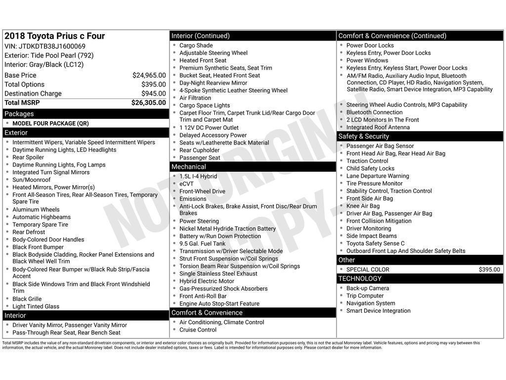 2018 Toyota Prius c Four