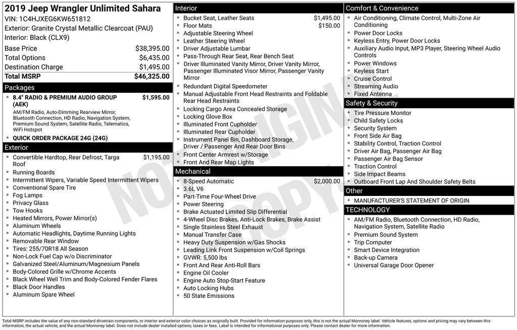 - Manual Convertible Top w/Fixed Roll-Over Protection and Top