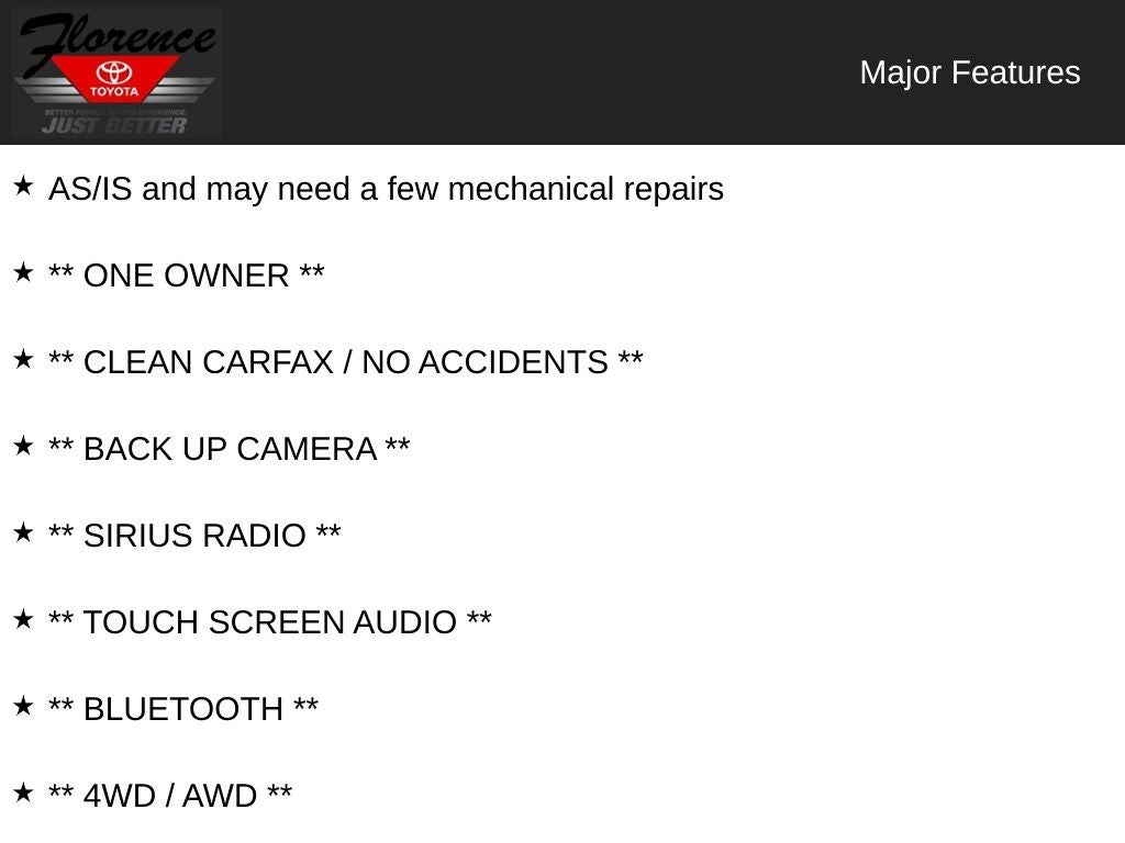 AS/IS and may need a few mechanical repairs, ** ONE OWNER **, ** CLEAN CARFAX / NO ACCIDENTS **, ** BACK UP CAMERA **, ** SIRIUS RADIO **, ** TOUCH SCREEN AUDIO **, ** Bluetooth® **, ** 4WD / AWD **, ** BLIND SPOT MONITOR **, ** ACTIVE / ADAPTIVE CRUISE CONTROL **, RAV4 LE, 4D Sport Utility, 2.5L 4-Cylinder DOHC Dual VVT-i, 8-Speed Automatic, AWD, Apple CarPlay, Auto High-beam Headlights, Remote keyless entry, Steering wheel mounted audio controls.