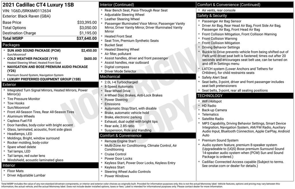 - Cadillac user experience, AM/FM stereo with 8" diagonal HD color information display, 2 USBs, personalized profiles for each driver's settings, Natural Voice Recognition, Phone Integration for Wireless Apple CarPlay/Wireless Android Auto capability for compatible phone, Near Field Communication (NFC) mobile device pairing, Connected Apps and Teen Driver (Upgradeable to (IOT) Cadillac user experience with embedded navigation when (PCM) Sun and Sound Package is ordered.)