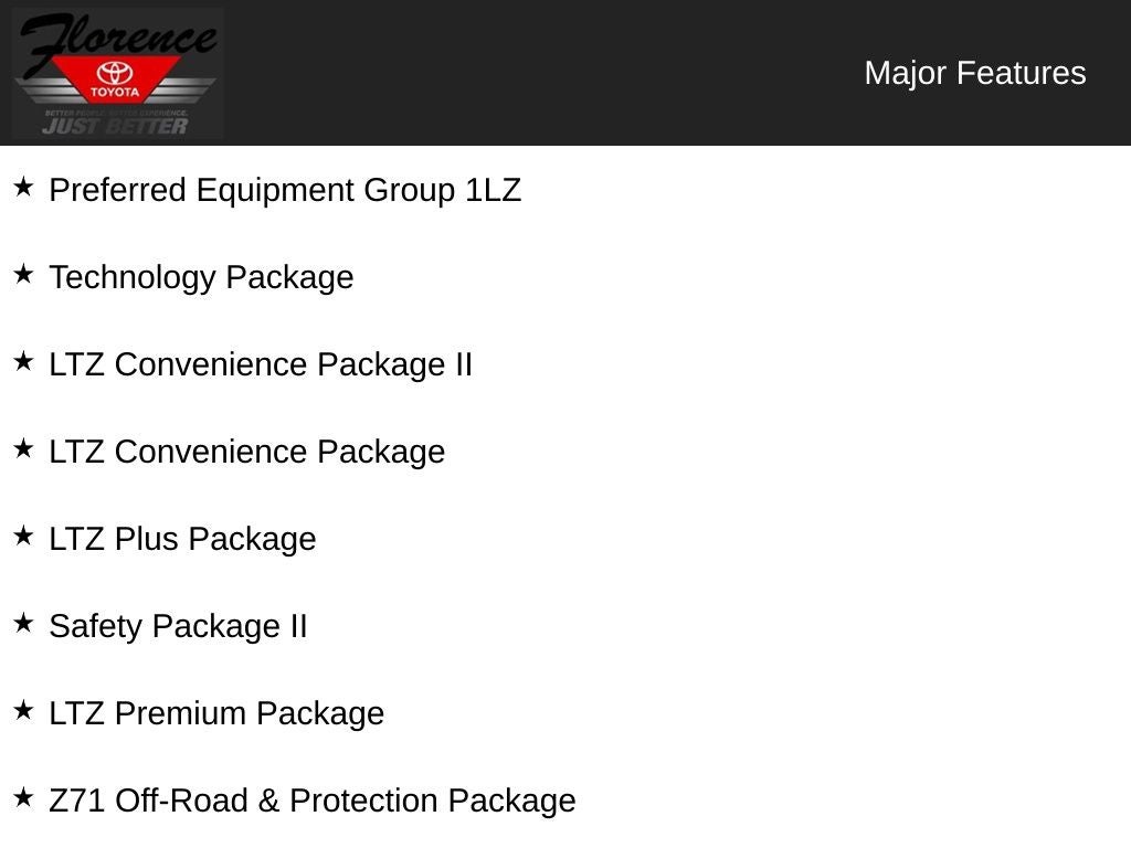The LTZ Premium Package, Technology Package, and Z71 Off-Road & Protection Package elevate this Silverado to new heights, offering a wealth of advanced features and capabilities. Enjoy the convenience of the 15-inch Head-Up Display, the versatility of the Bed View Camera, and the confidence of the Hill Descent Control and Skid Plates.