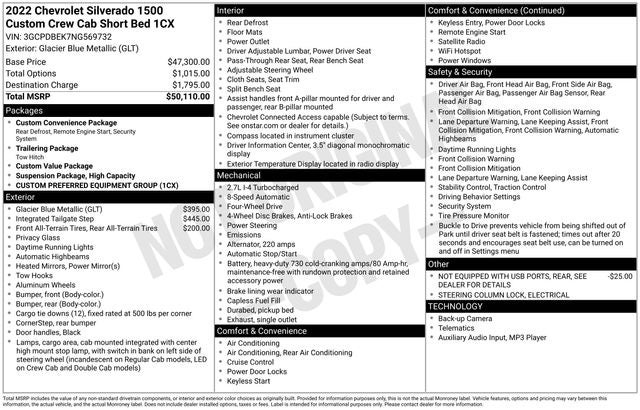 Climb inside and experience the thoughtful features that make this Silverado Custom stand out. Enjoy the convenience of wireless phone projection, a premium audio system, and dual rear USB ports for charging your devices on the go. Stay connected with the Chevrolet Infotainment 3 system and SiriusXM Radio.