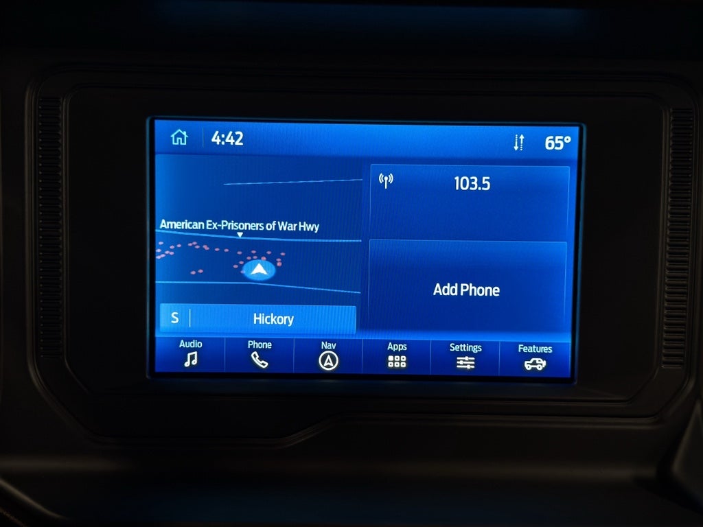 Inside, enjoy a tech-forward cabin designed for convenience and connectivity. Automatic Climate Control keeps the interior comfortable in any weather, while Hands-Free Bluetooth® and Apple CarPlay make staying connected and entertained effortless. Built-in Navigation ensures you find your way on long trips or remote routes. The Ford Bronco's comfortable seating and thoughtfully arranged controls provide a pleasant driving experience for daily commutes and weekend adventures.