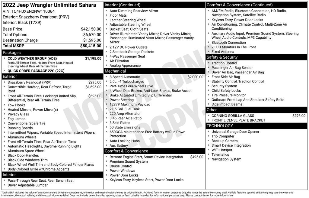 - Manual Convertible Top w/Fixed Roll-Over Protection and Top