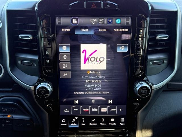 Quick Order Package 2HZ Big Horn. Cold Weather Group: Engine Block Heater; MOPAR Winter Front Grille Cover. Night Edition: Black Ram Head Tailgate Badge; 20" X 8.0" Black Painted Aluminum Wheels; Black Headlamp Bezels; Body Color Door Handles; Painted Front Bumper; Painted Rear Bumper; Gloss Black Grille Nostrils/mic; LT285/60R20E OWL On/off Road Tires; Black Exterior Truck Badging; Body Color Grille Surround; Black Interior Accents; Black Tail Lamp Bezels; ParkSense Front/rear Park Assist System. Level a Equipment Group: Locking Lower Glove Box; Rear View Auto Dim Mirror; Power Adjustable Pedals; Leather Wrapped Steering Wheel; Rear Dome with On/off Switch Lamp; Front Fog Lamps; Steering Wheel Mounted Audio Controls; Dual Glove Boxes; Glove Box Lamp; Footwell Courtesy Lamp; Universal Garage Door Opener; Foam Bottle Insert (door Trim Panel); 2nd Row in Floor Storage Bins; Sun Visors with Illuminated Vanity Mirrors; Big Horn Instrument Panel Badge. Heavy Duty Snow Plow Prep Group: Transfer Case Skid Plate Shield; 220 Amp Alternator. Quick Order Package 2GZ Big Horn. Uconnect 5 Navigation with 12.0" Display Radio. 9 Alpine Speakers with Subwoofer. 5th Wheel/gooseneck Towing Prep Group. Anti-Spin Differential Rear Axle. ParkSense Front/rear Park Assist System. Center Stop Lamp with Cargo View Camera. Premium Cloth Bucket Seats. Remote Start System. 115-Volt Auxiliary Front Power Outlet. Front Fog Lamps. Rear Wheelhouse Liners. MOPAR Front and Rear Rubber Floor Mats. Tow Hooks. Cluster 7.0" TFT Color Display. **Equipment listed is based on original vehicle build and subject to change. Please confirm the accuracy of the included equipment by calling the dealer prior to purchase.**