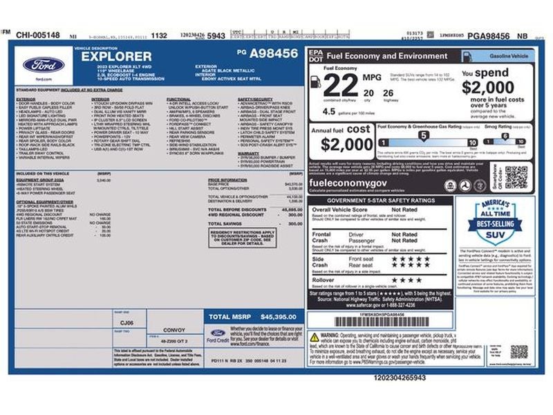 Boasting a commanding presence with its sleek Black exterior, the Explorer XLT is equipped with a robust 2.3L EcoBoost I-4 engine paired with a smooth-shifting 10-Speed Automatic transmission and capable 4WD system. Enjoy the impressive fuel efficiency of 20 city/27 highway MPG, making this SUV an exceptional choice for your daily commute and weekend getaways.