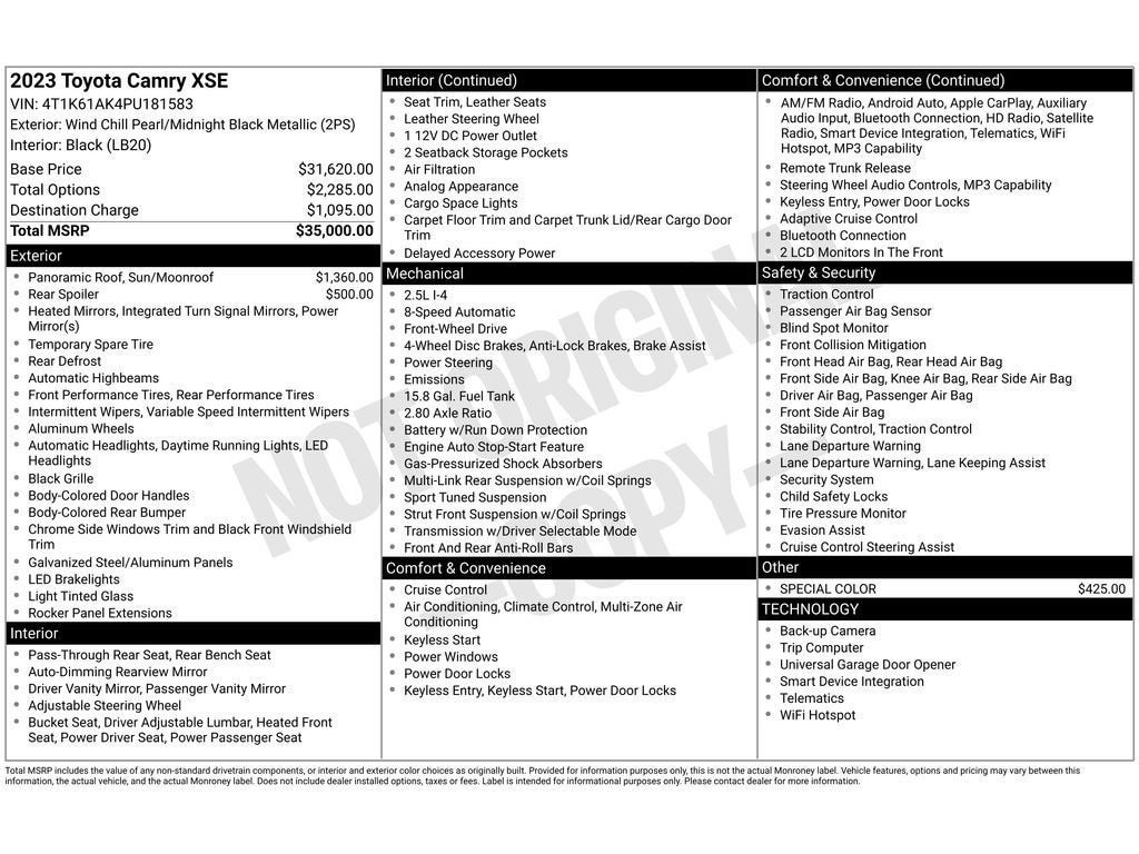 - Vehicle Name: Toyota Camry