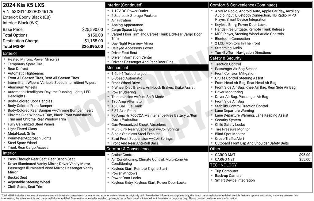 Elevate your driving experience with this stunning 2024 Kia K5 LXS. Boasting a sleek black exterior and a meticulously maintained interior, this vehicle is ready to take you on the journey of a lifetime.