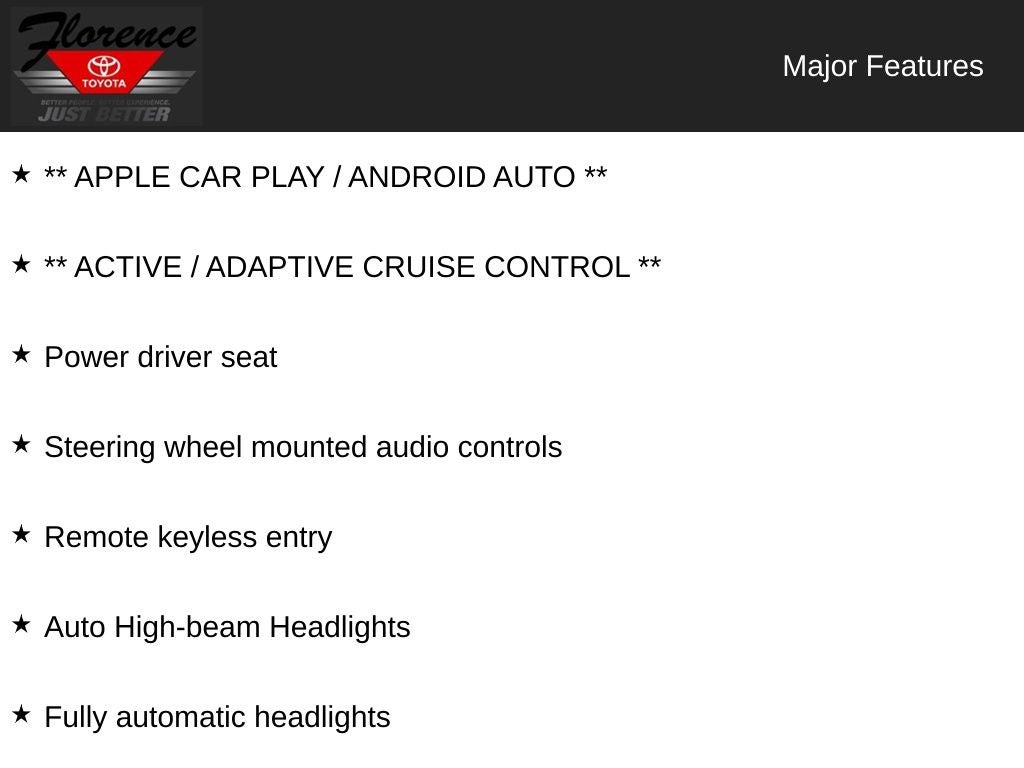 At Florence Toyota, come see how our USED CARS are JUST BETTER. We offer the following benefits: Lifetime Power Train (Some exclusions apply), 1st Year Maintenance, $500 Additional Trade In Appraisal, 72 Hour Vehicle Exchange Program, Yearly Vehicle Appraisal & Safety Inspection, VIP Loyalty Program, Routine Express Service, Courtesy Service Shuttle, Express Buying Service. Also, as an added benefit we will buy your vehicle even if you don't buy ours!! Call today (866)830-0793 or visit us at www.florencetoyota.com *Customer must trade-in a vehicle to receive $1,000 Trade Assist credit that is included in the online price. **Financing must be provided by a third-party lender using this dealership's assistance for Customer to receive $1,000 Financing Assist credit that is included in the online price. See dealer for complete details.